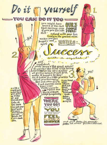 As an example, I searched the keywords “success” and “failure” in a big commercial database. The results were as I expected: everything related to “success” rises up in the air – arms thrown over the head, cups of champagane ringing, mouths wide open with joy. Failure, on the other hand, is represented by rumpled paperballs, broken things in general and by people on the ground: heads burried in the hands, eyes shedding tears.